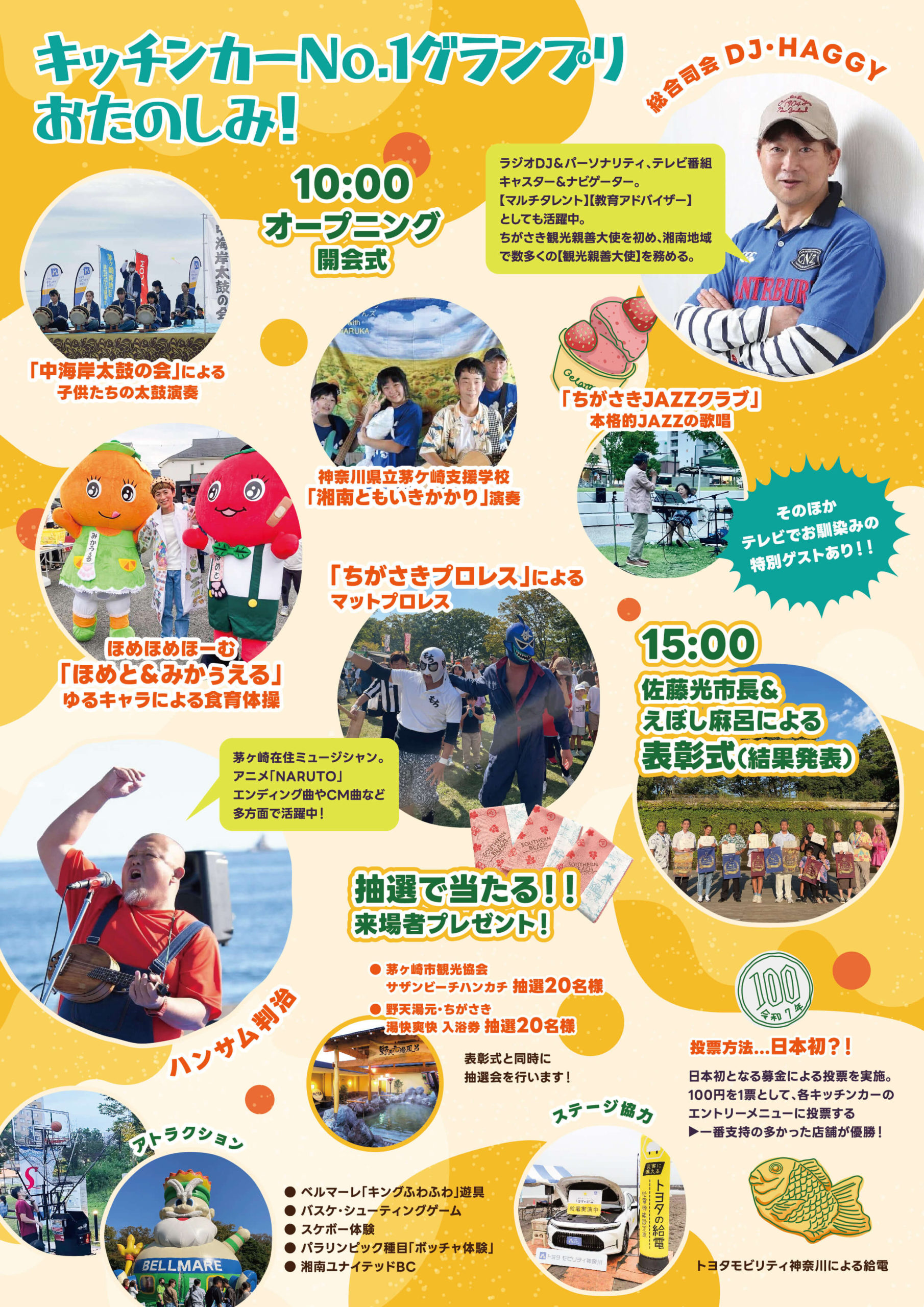 今年で2回目となる 「キッチンカーNo.1グランプリ」 が、10月12日(日)に茅ヶ崎中央公園(第一カッターきいろ公園)で開催されます!
